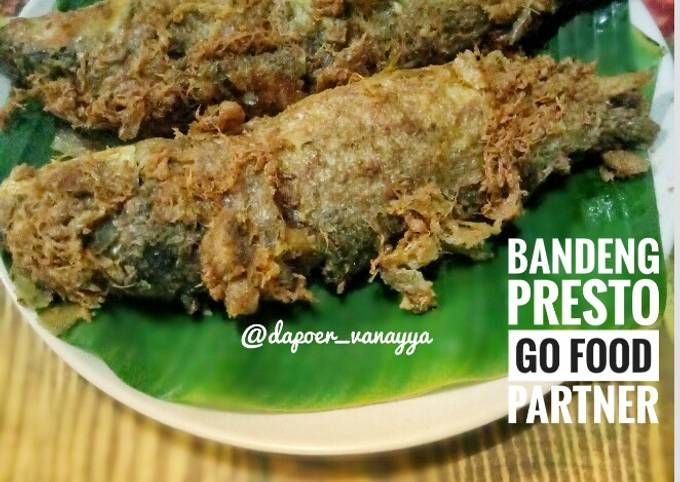 - Cuci bersih bandeng. Haluskan bumbu dg blender. Tuang ke dalam bandeng yang telah dicuci bersih tadi. Diamkan dikulkas 30 menit, supaya bumbu meresap. Sewaktu membersihkan ikan bandeng jangan terlalu lebar membelah perut ikan agar ikan bagus nantinya. tambahkan 1 sdt fermipan supaya sewaktu dipresto dan digoreng tidak hancur..