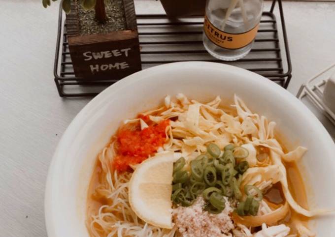- Setelah semua sudah siap, masukan ayam,kubis, bihun beri kuah soto dan siap di sajikan..