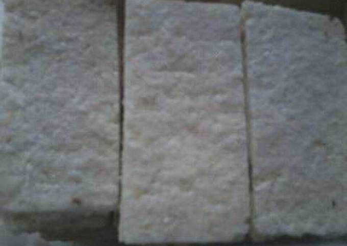 - Sediakan 1 butir kelapa yang agak muda, parut ambil putihnya saja lalu sangrai.